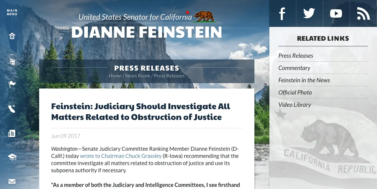 Feinstein: Judiciary Should Investigate All Matters Related to Obstruction of Justice