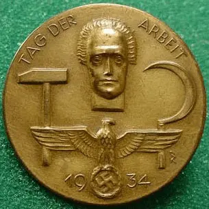 Well--as a symbol of the working man....in the context of the times--maybe--this is an original medal struck as a Labor Day memento:They even displayed the communist hammer and cycle with the swastika for a while.No they were not. All the proof of that you need is to look at the Nazis we still have in America and other parts of the world. Calling them socialists would probably earn you an ass beating. The original Nazis played socialist to the labor unions. They played Christian to the religious people. They played capitalist to the rich and monarchist to the aristocrats. In the end they were whatever it took to hoodwink the German people. Turns out they were simply a fascist kleptocracy.Ummm...I said nothing about Tommys past whatever...I simply stated a clear historic fact. The Nazis were socialists----GERMANYS national socialist party and since we went to war against the Nazis (aka socialists) that he whoever he was..was indeed correct in saying we went to war to free the Europeans from the socialists in ww2.Ummm....NAZIS were socialist hun. So yes, we fought ww2 to free Europe from the socialists.![]()