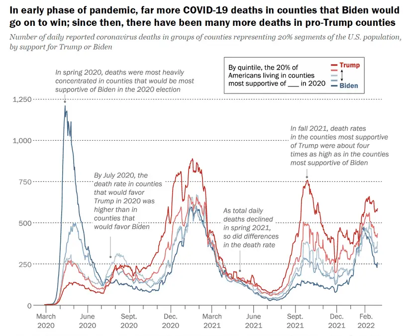 "by the end of 2020, when rates of hospitalization and death from COVID rose in conservative counties and dropped in liberal ones."