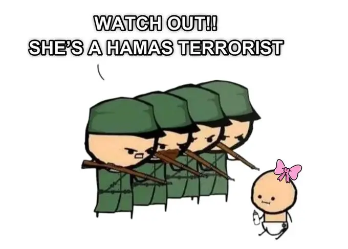 A tired trope.Dumb. Hamas hides behind little kids.