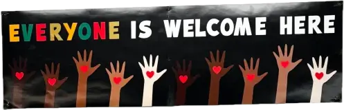 Trump would have the poster banned.Well, it has hands of all colors and indicates that “all” are welcome, which means it supports both diversity and inclusion.