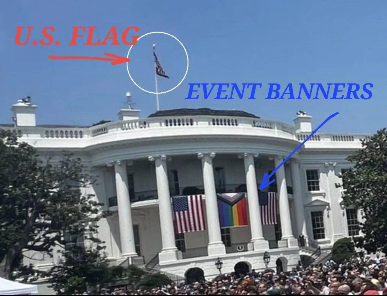 Shouldn't these so-called freedom loving flag waving patriots know the difference between an event banner and a flag?? Or do they not really care about stuff like that when it gives them a chance to hate on their favorite outgroup to hate.....those child raping pedophile trannies...