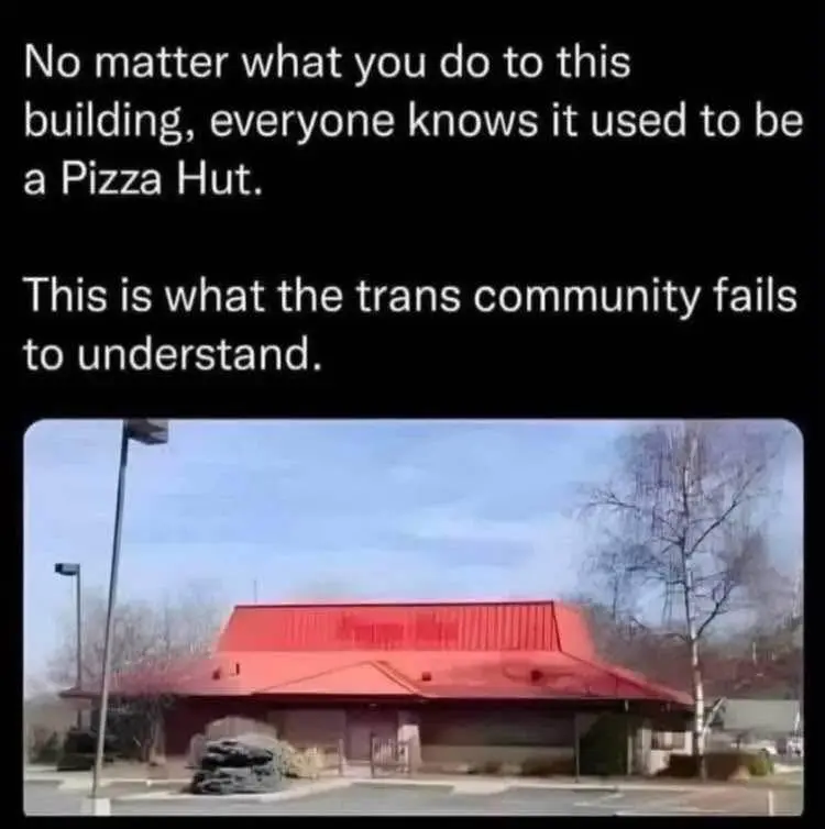 JoeB131 Diamond Member Joined Jul 11, 2011 Messages 197,360 Reaction score 43,219 Points 2,220 Location Chicago, Chicago, that Toddling Town Mar 16, 2025 #223 Freedomisneverfree said: View attachment 1090219 Click to expand... Yet these building are other things now. One near my house is now a carpet cleaning service. Another one is a car rental place. I can go into it, and get my carpets cleaned, or rent a car, but they won't serve me a pizza. The ironic thing is that very few Pizza Huts are still using this design. They are using regular strip mall locations now.