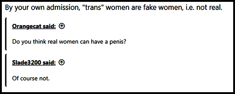 I said trans women. You need to lie about my words to make an argument. That’s weakYou think women can have penises. I have no desire to debate delusional UIs.