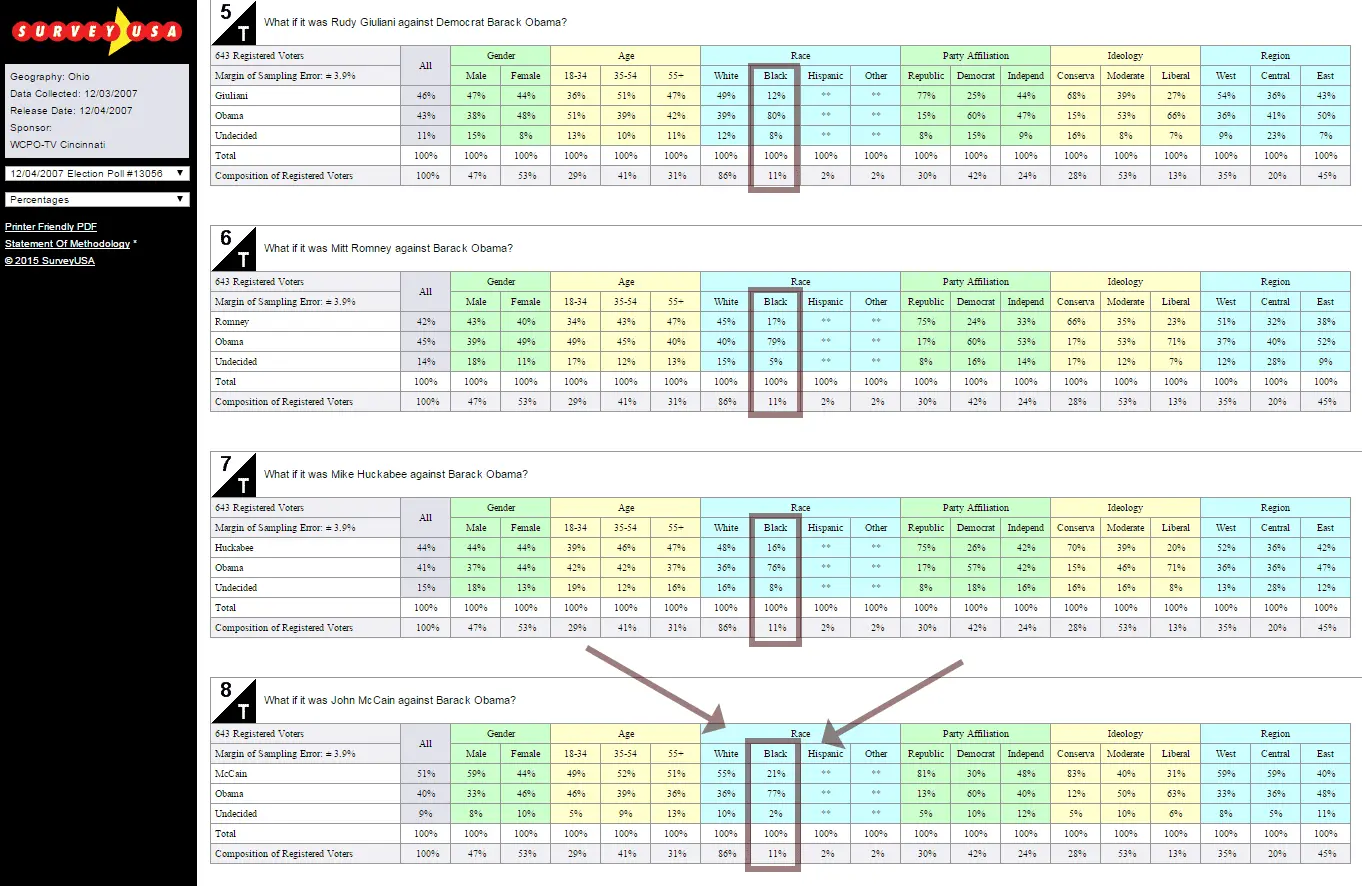 Black vote in Ohio with 97% while McCain got all of 2%.