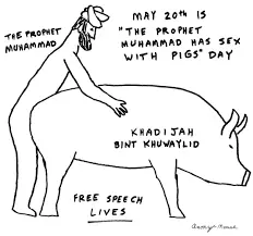No government or jurisdiction is seeking to prohibit the creation or exhibition of 'Muhammad cartoons,' nor does any government or jurisdiction seek to disallow persons to gather to display such 'cartoons,' consequently there is no free speech 'issue,' and no First Amendment 'violation.'