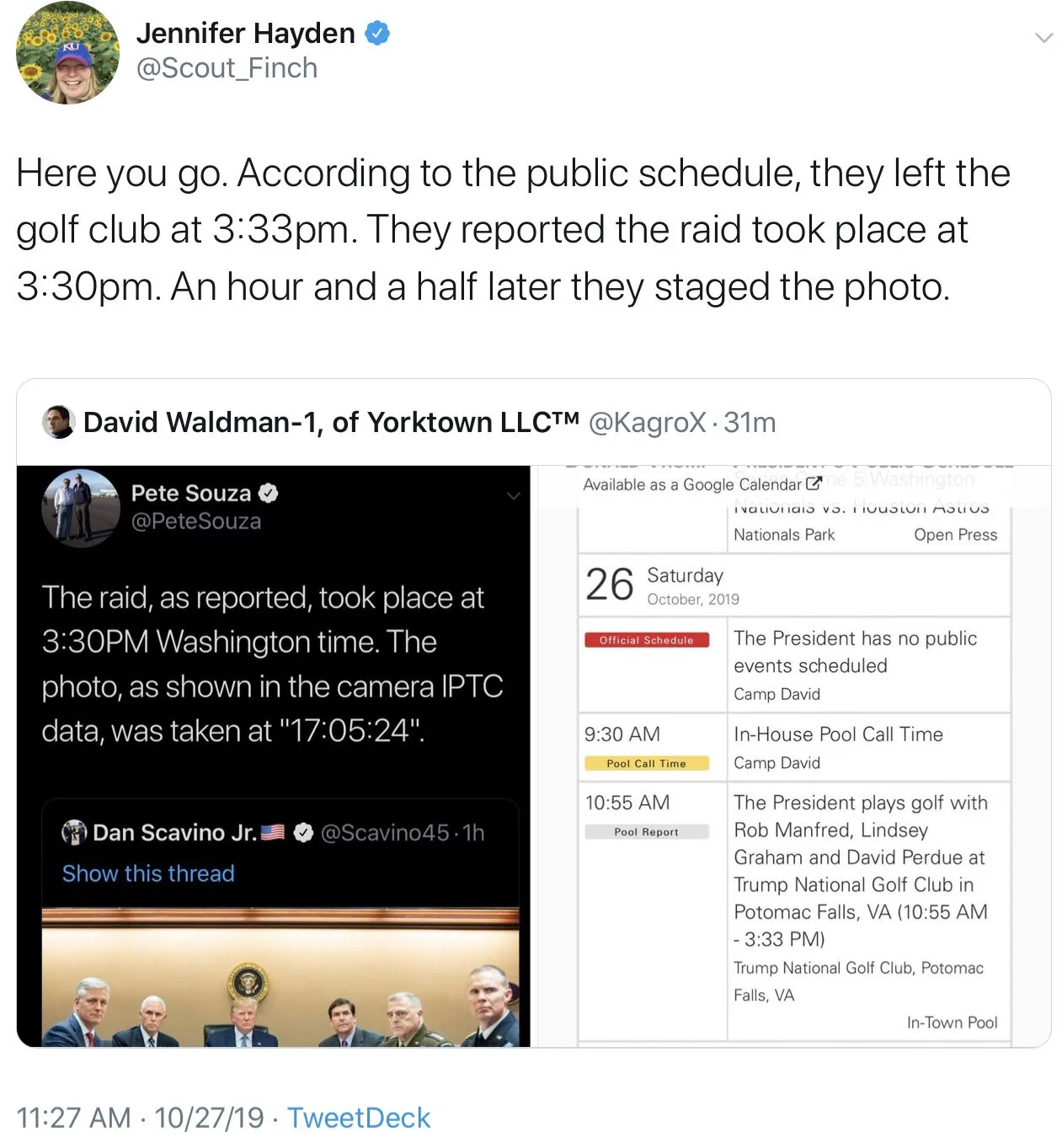 A google search reveals that crowds gathered outside the White House and cheered when Obama announced the death of Bin Ladin. Shouldn't President Trump get the same consideration without inane polls that use the "F" word? Democrats even used the slogan "Bin Ladin is dead and General Motors is alive" in political stunts for months.