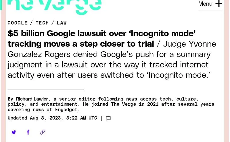 $5 billion Google lawsuit over “Incognito mode” tracking moves a step closer to trial