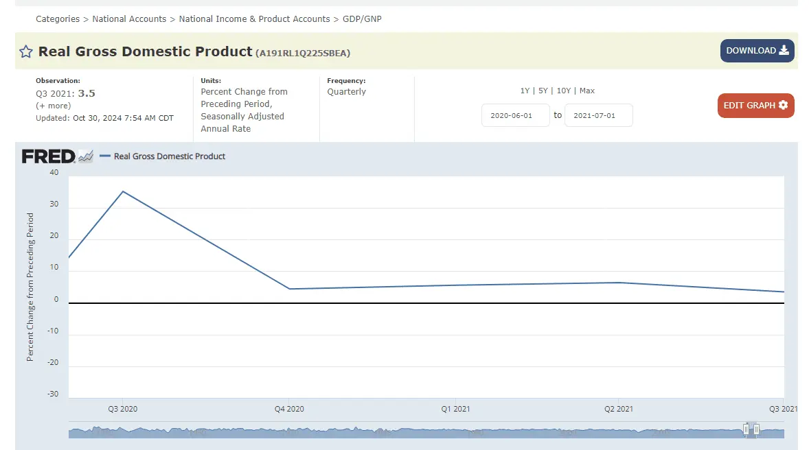 View the annual rate of economic output, or the inflation-adjusted value of all new goods and services produced by labor and property located in the U.S.fred.stlouisfed.org