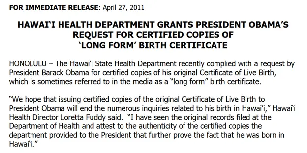 What Fuddy vouched for was found to be 100% fraudulent. Where is the original 50+ year old document with the state raised seal like the Nordyke twins?He admitted he wasn't a citizen way back in 1991.We remember that Clinton finally admitted to wrong doing just before he left office in 2000 so I am wondering if Obama will admit his true nation of origin just before he goes.
