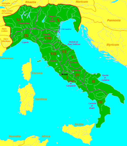 The map shows clearly what the Romans considered Italy. You're saying South Tyrol is part of Austria. Maybe for a time but not if you go back in history.twas part of another province