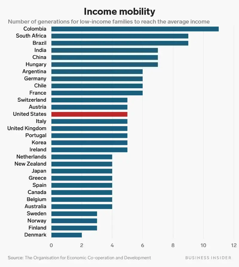 Sweden isn’t just “good” at economic mobility — it is one of the best in the world, and dramatically better than the United States.
