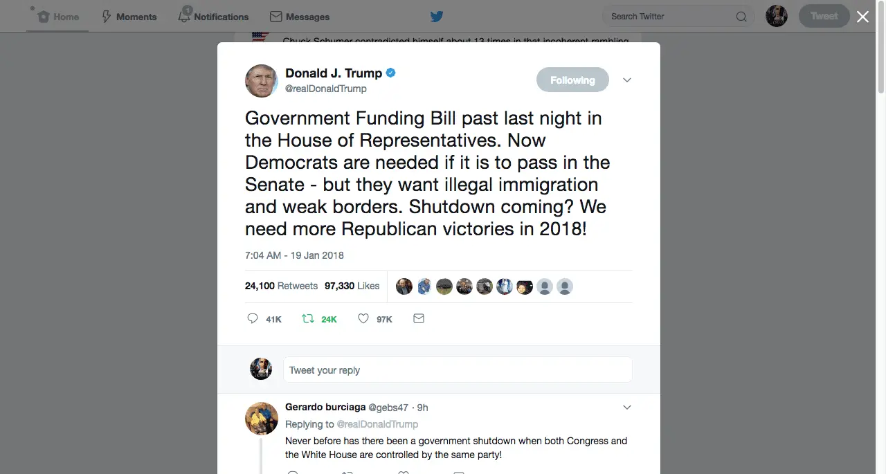 I want to remind the DOPers that the Great Douche was for Shutting Down Gobmint IF ITS BS WALL WAS NOT FUNDED during 2016. And said in 2013, Gobmint shutdowns are fully blamed on Presidents. But here 2018, the Douche will change its tune and blame others as the weak lying Douche CryBaby it is.