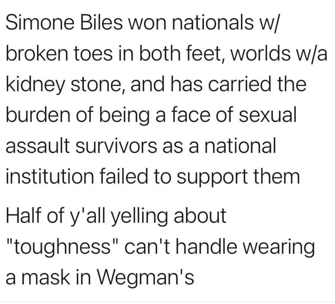 She’s lost the hunger. You don’t bail on your teammates and everyone who helped you get to where you are like that at the last moment. The fact that she hasn’t ruled out participating in individual competition tells you a lot about this story. Most likely this was a publicity stunt. It’s going to make her more money.View attachment 518304