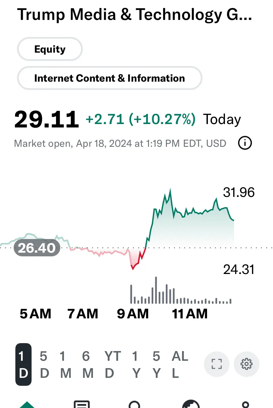 Have fun trying to time this stock.There’s gotta be at least one more big money pump into the Trump stock before November . There’s people out there who have bought and sold the stock in a relative short amount of time and made a ton of money each time they did it.