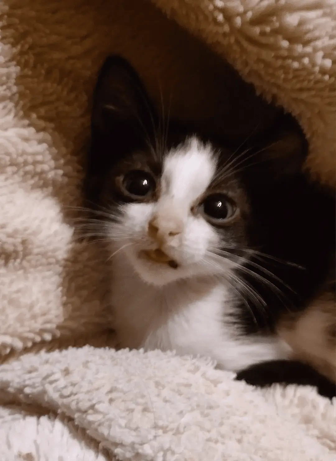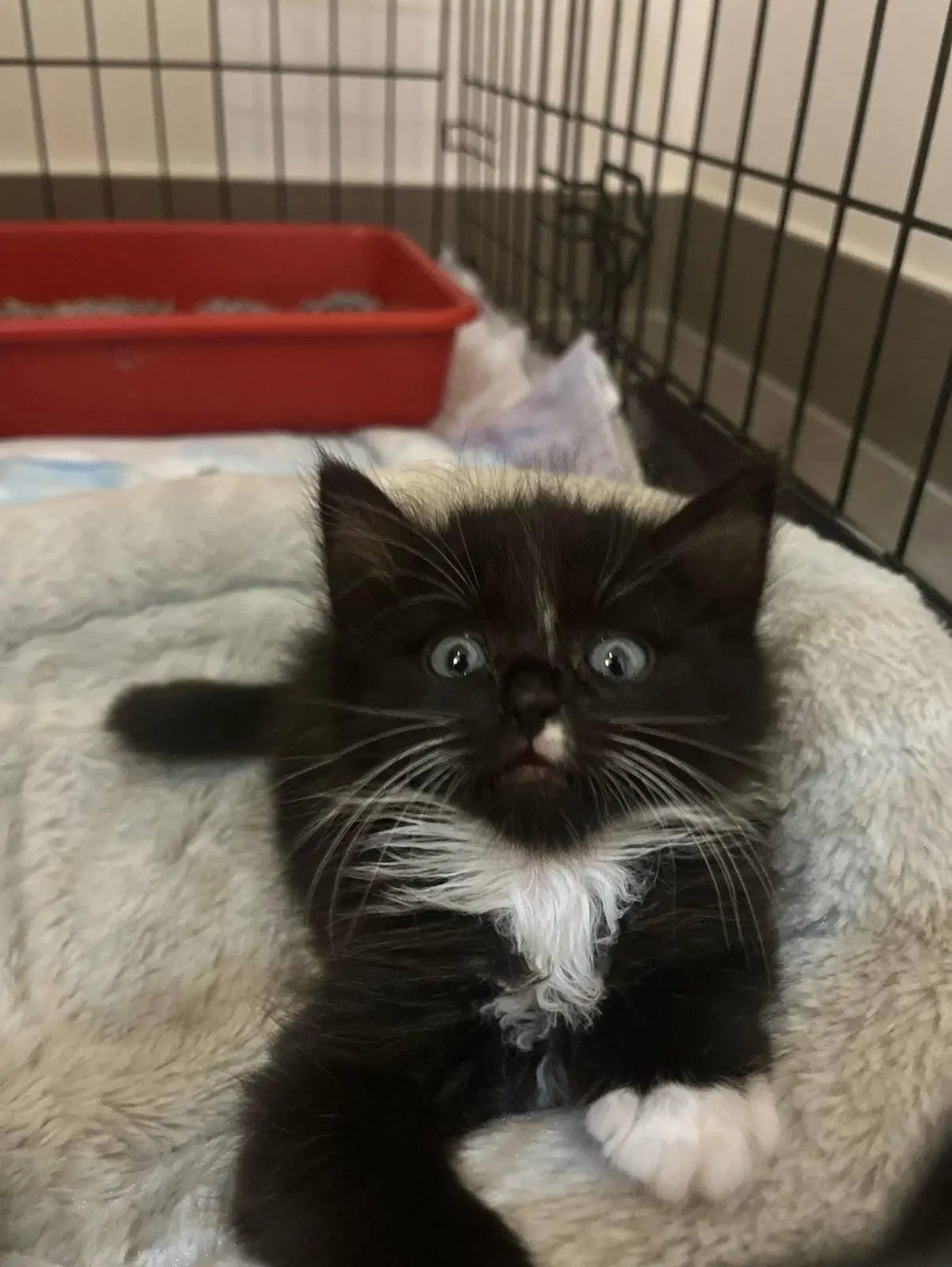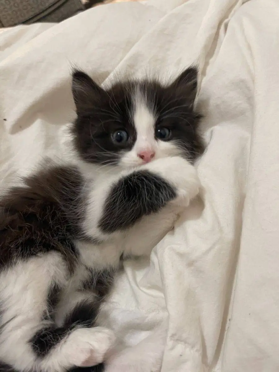 So she wanders over to the bleachers and sure enough all snuggled up together in the dugout were five tiny black and white kittens about a couple of months old. Three males and two females. They were taken to a local family owned animal shelter and miraculously all of them were in perfect health. These are the five snow angels.