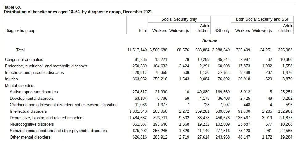 Annual Statistical Report on the Social Security Disability Insurance Program, 2021 - Disabled Beneficiaries Receiving Social Security, SSI, or Both