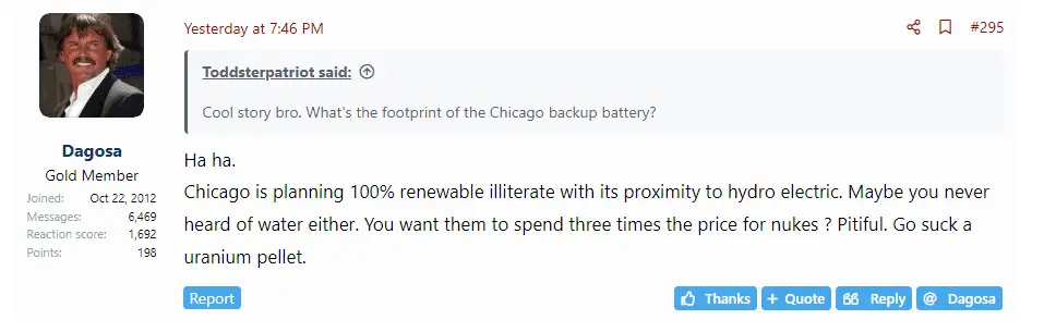 Or about Chicago planning 100% renewable. I mean, our mayor is a moron like you,