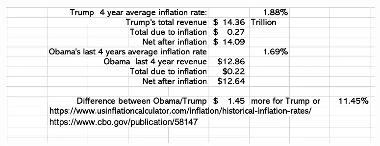 Comparing Trump TAX CUTS results AFTER deducting for inflation the apples to apples is simple.