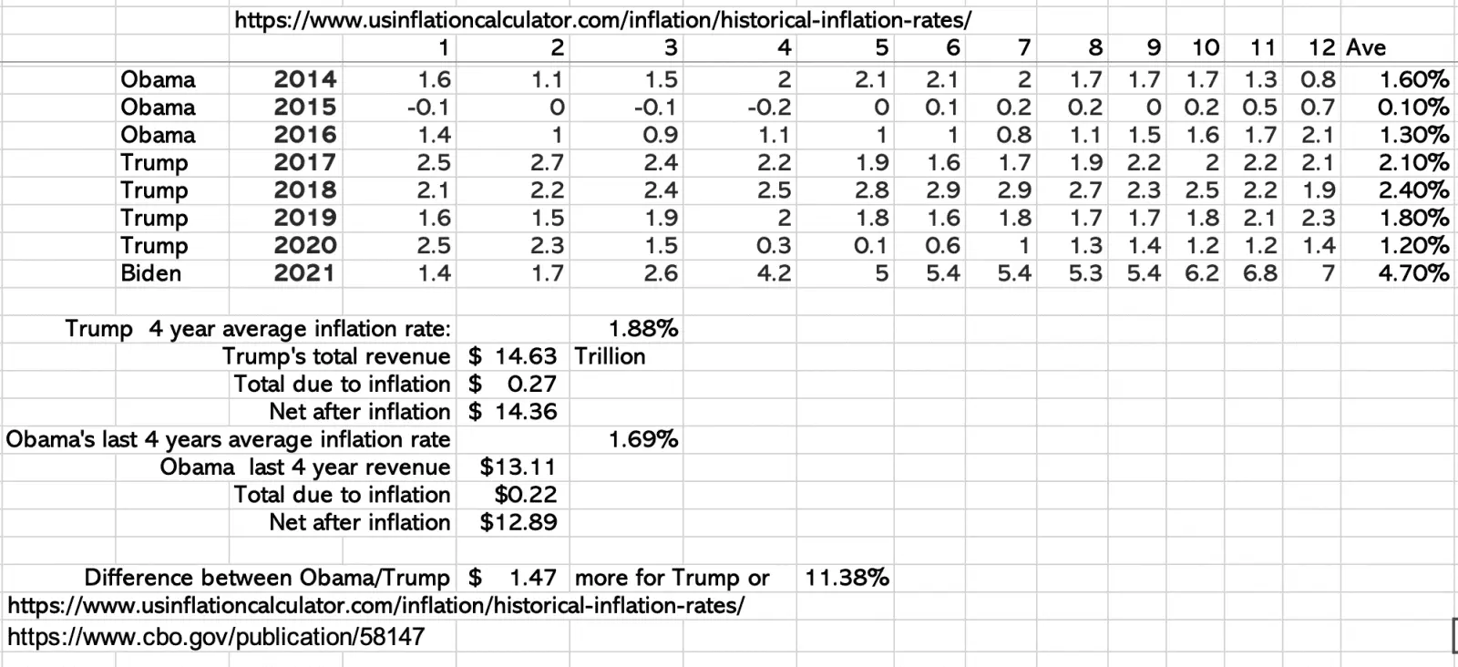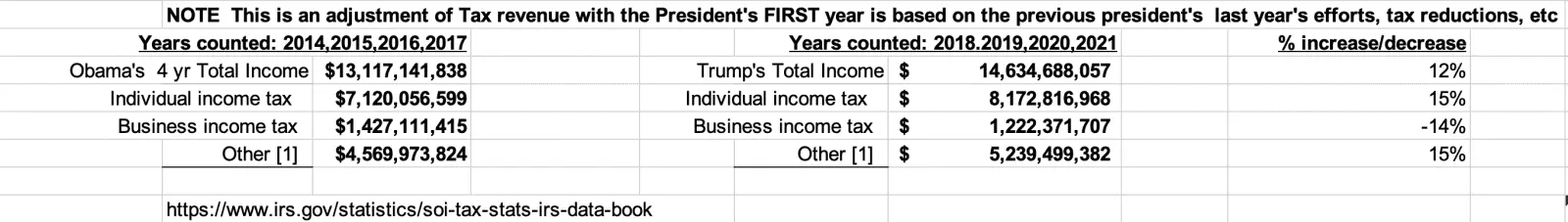 So AFTER inflation Trump still had 11.38% more revenue than Obama EVEN after Trump tax cuts.