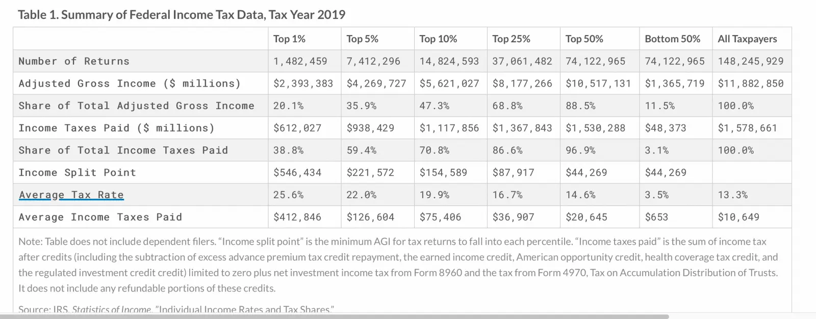 FACT:Summary of the Latest Federal Income Tax Data