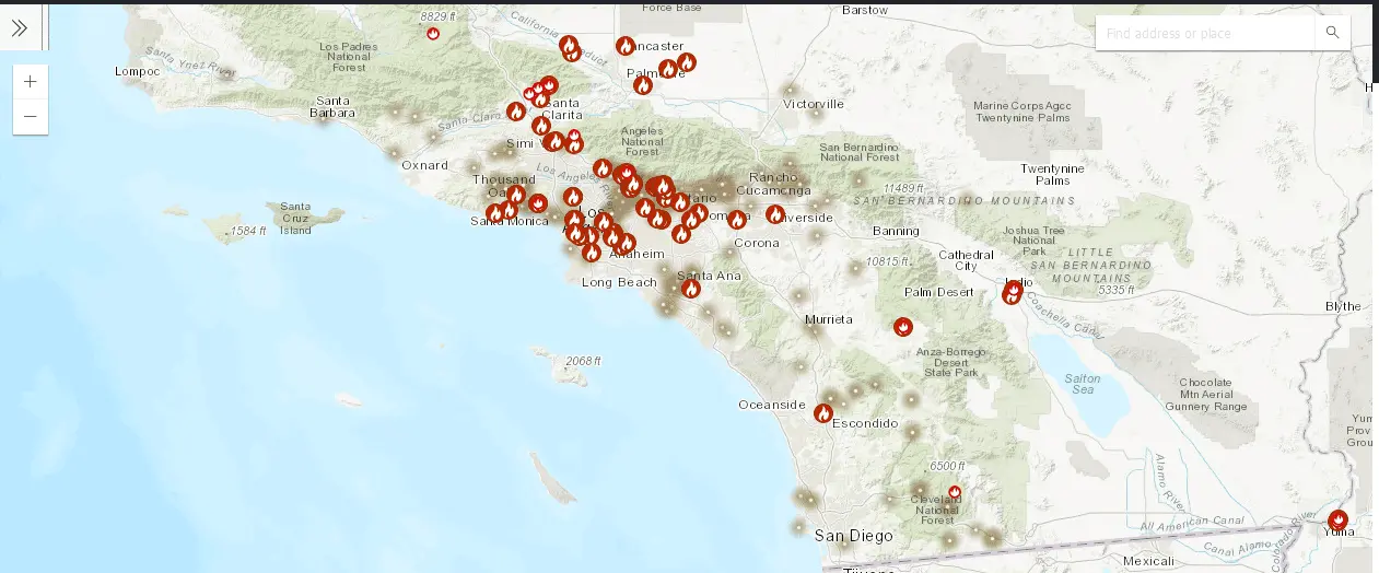 Look at this map. It's a live, updated map of all the fires currently going on around LA.