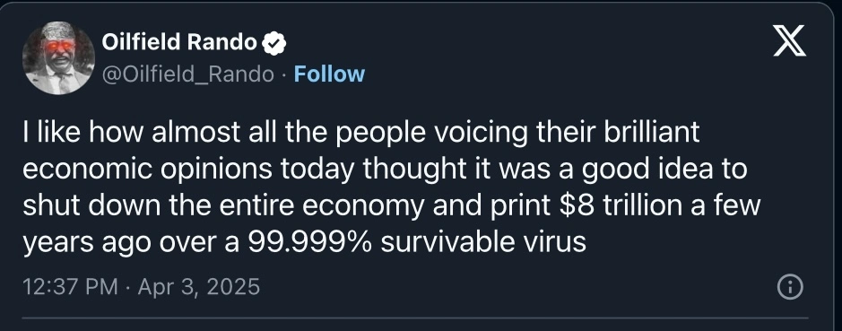 The liberation continues.1600 point bloodbath...the dow is flirting with sinking below 40,000. Millions of folks with 401k plans invested in the market are rightfully nervous as the White House doesn’t seem to have a clue as to what it’s doing.