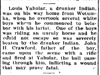 "Rosco Crawford, Hannie Crawford’s brother, told (his granddaughter) that as a young boy living in the Creek Nation of Indian Territory, the Indians were “pretty mean.” Once, when a Creek was hitting Crawford’s younger brother, their father shot and wounded the Indian, according to her biography, on file at California State University at Fullerton."