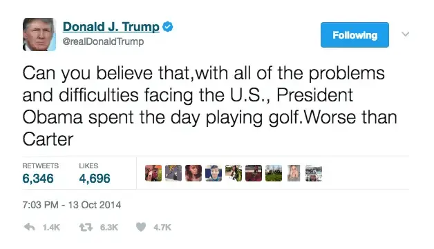 How is that him being a hypocrite? Has he ever spent all day playing Golf?View attachment 346309He is many things. Hypocrite is not one of them. Narcissist and Hypocrite are not the same thing.As I stated, it was a poster on this board. The blob is Trump. I call him that because he is morbidly obese. Blob supporters are people like yourself who support the blob.Who are blob supporters? Your supporters? Name one prominent person who believes this.I mean in terms of prominent people or politicians? Not some whack jobs here. Blob supporter? I dont support you and your fake outrage and hypocrisy.I can quote your fellow blob supporter who said it. You probably want to give him a thumbs up for it: right?Who? Crazy talkAnyone who thinks we need to eliminate the police is a moron.