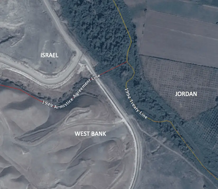 The 1949 Armistice Line is an unofficial reference line that PLO wants to establish as a Border. This segment of the 1949 Armistice Line was dissolved under Article XII(2), Armistice Agreement by the 10/26/1994