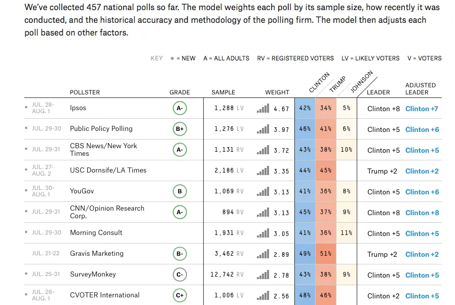Economist/YouGov 7/30 - 8/1 933 RV 4.1 46 43 Clinton +3
