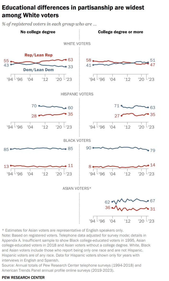 Partisanship by race, ethnicity and education