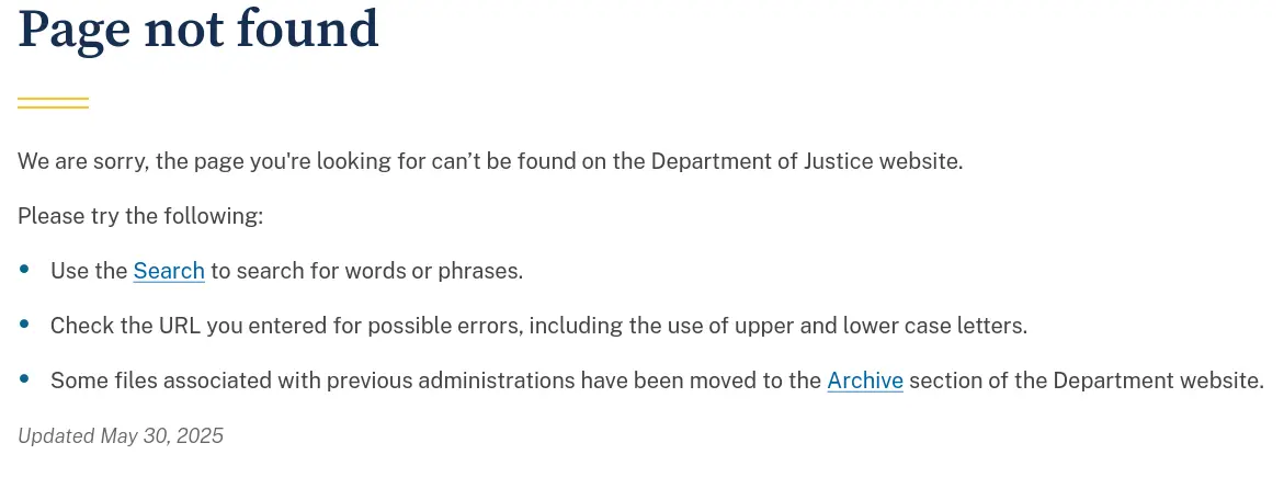 Here's an update on your link..........notice the difference in your link and the DOJ I posted from your link, notice the t.co in the lower left of your link, when I clicked it again from your original post, the t.co is missing. Notice the May 2025 update ? Spoofed?