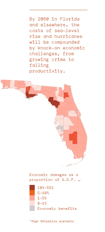 ....... What I found was a nation on the cusp of a great transformation. Across the United States, some 162 million people — nearly one in two — will most likely experience a decline in the quality of their environment, namely more heat and less water. For 93 million of them, the changes could be particularly severe, and by 2070, our analysis suggests, if carbon emissions rise at extreme levels, at least four million Americans could find themselves living at the fringe, in places decidedly outside the ideal niche for human life. The cost of resisting the new climate reality is mounting. Florida officials have already acknowledged that defending some roadways against the sea will be unaffordable. And the nation’s federal flood-insurance program is for the first time requiring that some of its payouts be used to retreat from climate threats across the country. It will soon prove too expensive to maintain the status quo.