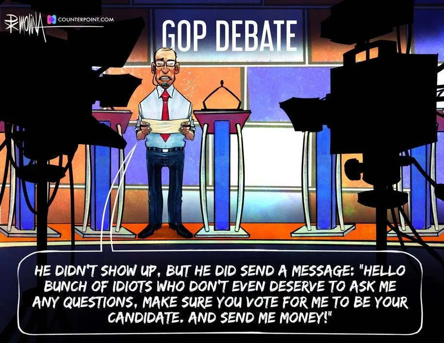 Nowhere near as bad as Biden did when he hid in the basement and even now refuses to answer any questions. Trump doesn't need to debate a bunch of ******* losers. His approval among Republicans is more than all of the other GOP candidate's added together.