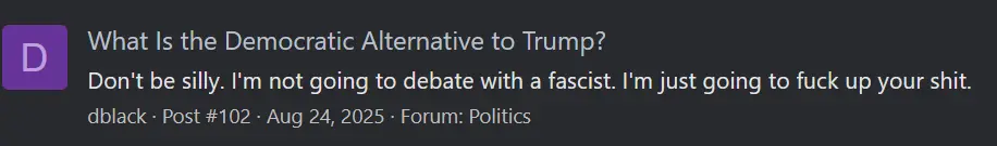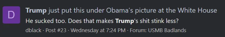 Are you trying to make a point? TDS is just something for you to jerk off to. It's not anything real. People who recognize that Trump is a piece of shit aren't insane. But you keep spinning your little fantasy. Because it's all you've got.
