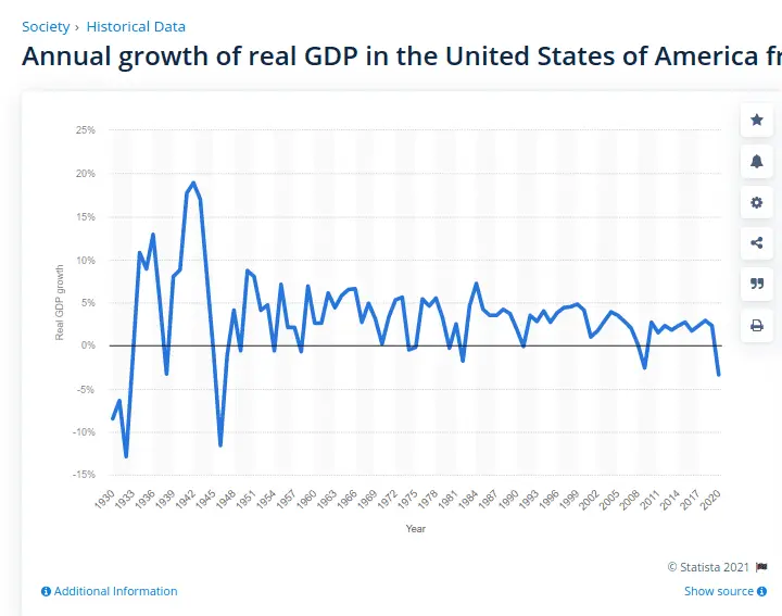 United States real GDP growth rate 1930-2025| Statista