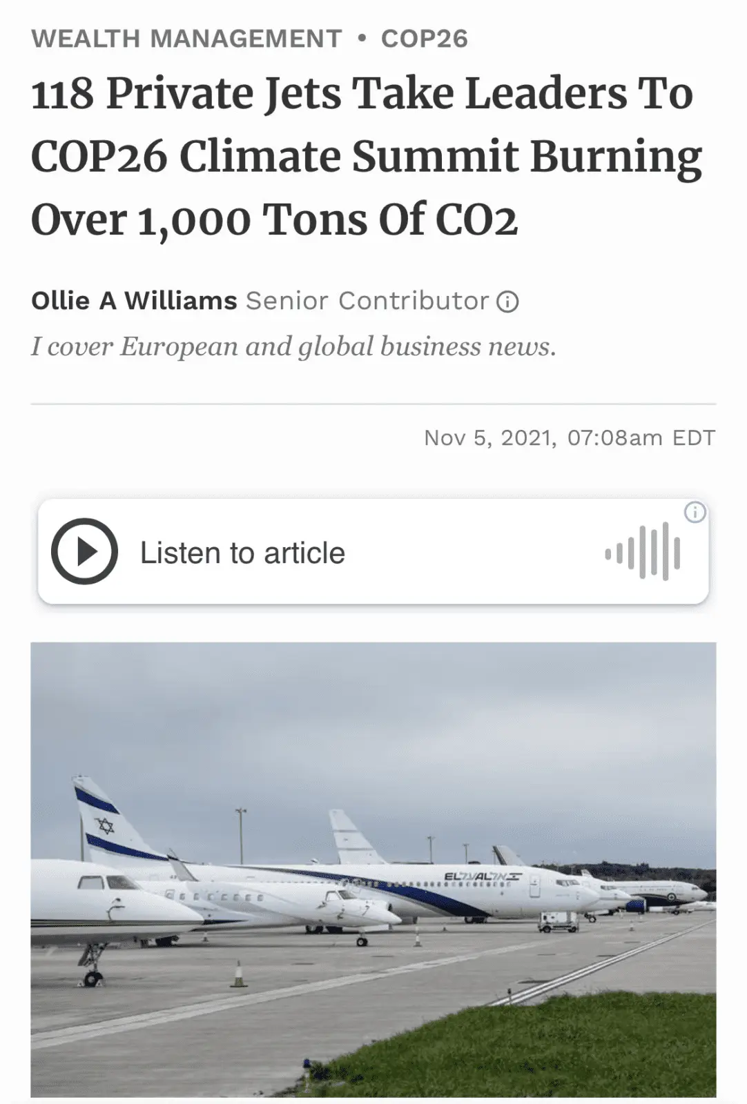 The socialist Spanish minister uses a private jet to attend a climate conference. 100 metres before the venue she gets out off the limo and takes a bicycle. The security cars follow her.