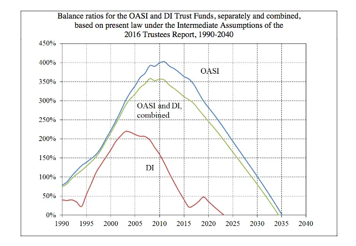 So after responding to the mindless crap here, I happen to notice this letter to the Senate. The trustees are required by law, to inform congress, when reserves are going to fall below 20% of expenses. That is happening right now for Disability Insurance, and the rest later.