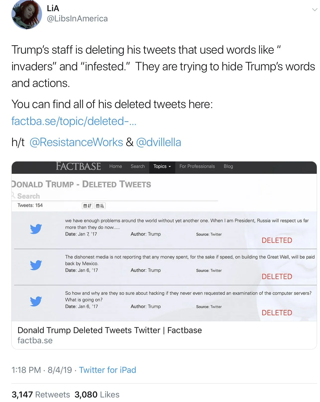 In the apparent manifesto of the alleged shooter in El Paso, TX: "Some people will blame the President or certain presidential candidates for the attack," it read. "This is not the case."