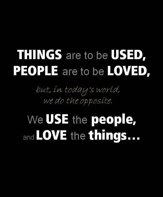 People were created to be loved. Things were created to be used. The reason why the world is in chaos; people are being used. And things are being loved.