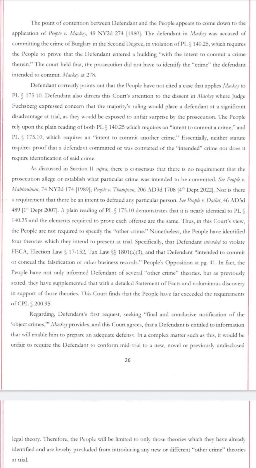 Nobody knew the crimes because Bragg didn’t release them. They weren’t released until late into the trial.