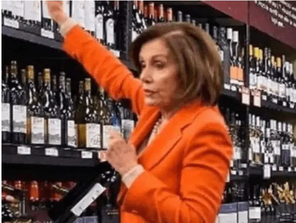 The below is a picture of the alcoholic Nancy Pelosi taken 10 minutes after that SOTU, she had a quick change from white into orange and then went out to hit the Booze Aisle: