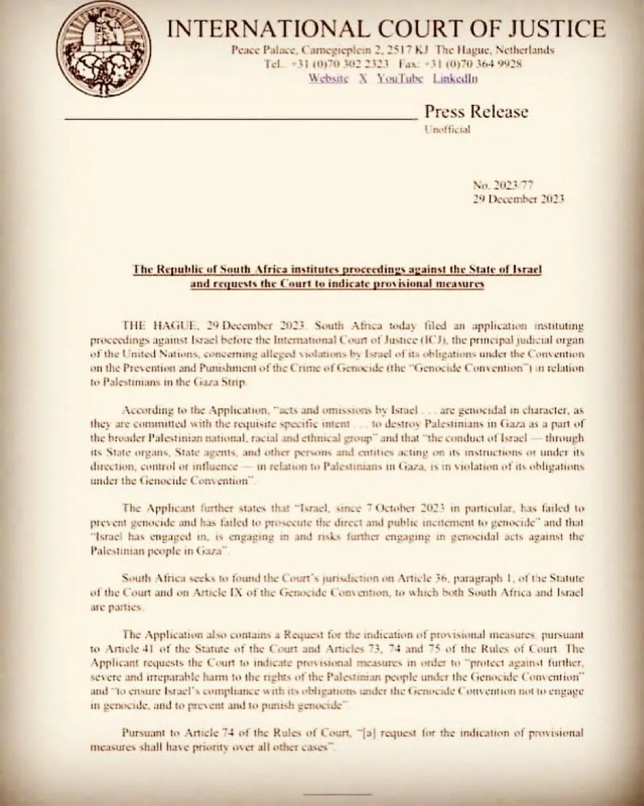 it is a war crime for Israel to directly target Palestinian civilians in hospitals, ambulances, schools, apartment buildings, and in their private cars.” The ministry reiterated South Africa’s call for an “immediate ceasefire.”
