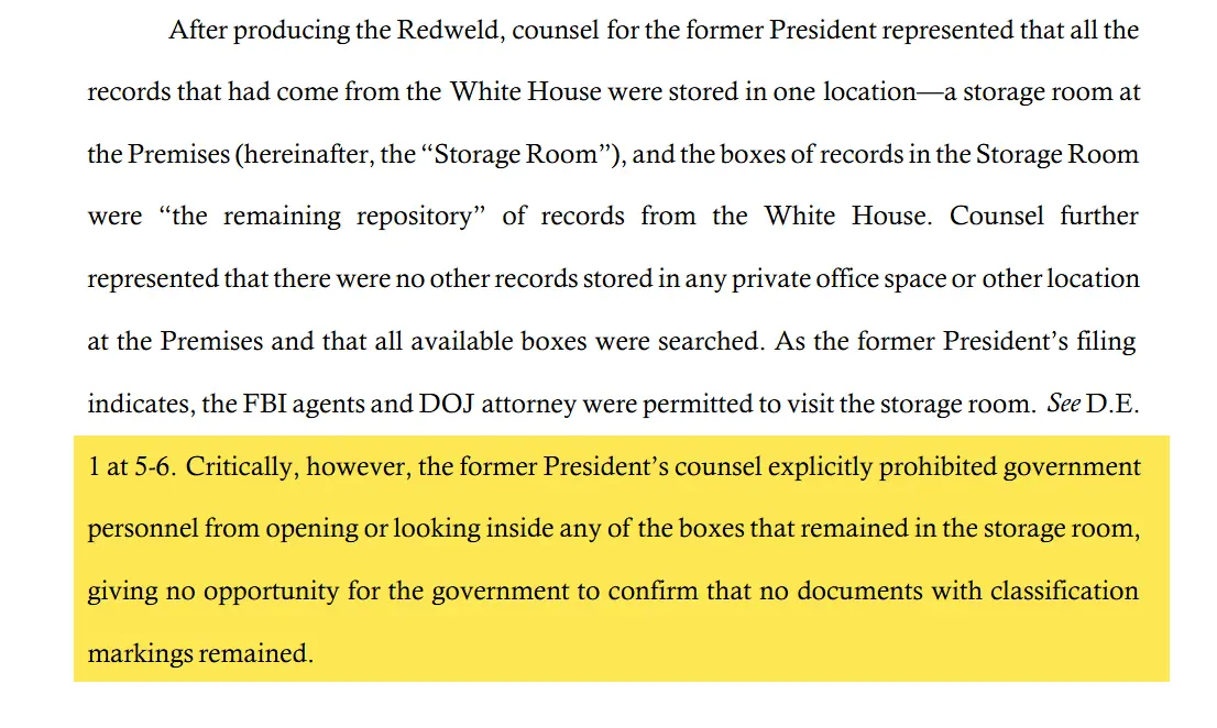 Well actually that's a document written by the political proseutor.Court documents say that the FBI was explicitly forbidden from looking in the boxes.