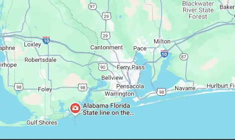 I looked on the map and Pensacola is on the border of Alabama and Florida.