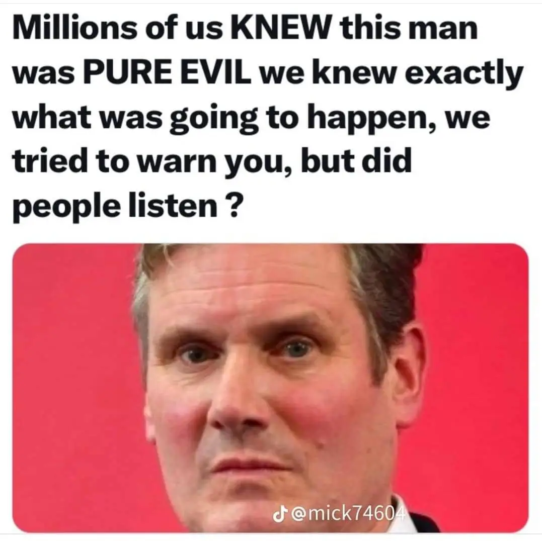 In 4 to 5 years time, the voters will kick our useless chief arsehole out of No.10. oh Dear Kier might go before then, on a vote of no confidence.He and Lammy are in the US, making twits of themselves.