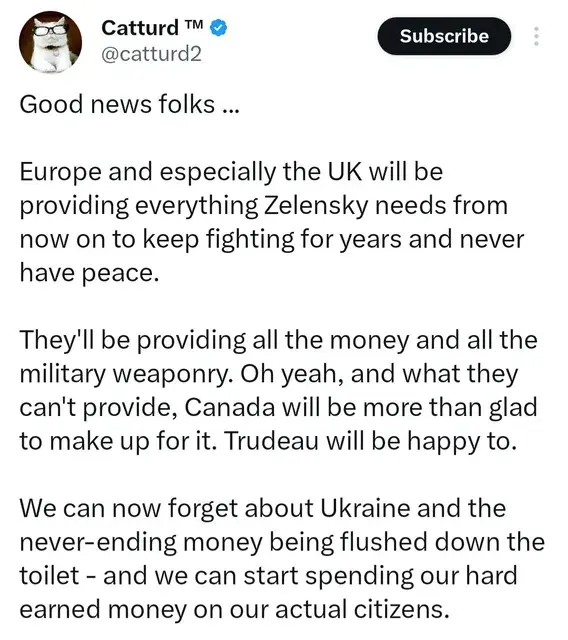 I have no idea what it is about but I suspect it is becoming an internal war on power within Europe but possibly stretching in a globalist fashion. I see people like Von Lying standing at the podium using the same gestures as Adolf Hitler did. I don't really know what is going on but I see Westrn Europe turning into a treacherous power-hungry entity with bloody fangs and the only ones able (or willing) to stop it are Putin, Orban, Fica, and Georgescu. Now that Trump and Vance are in Washington there is a chance that the US will also turn out to be the good guys.I guess it's all part of their "reduce the population plan."