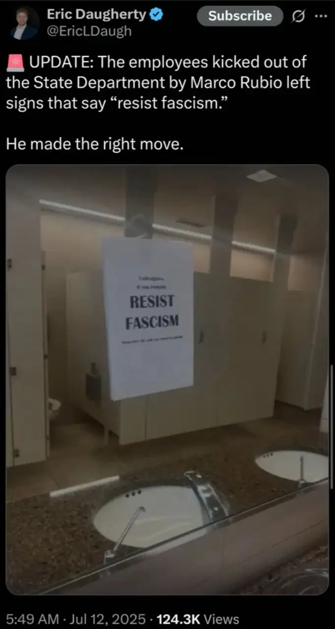The 1,300 or so State Department employees who got their pink slips yesterday were, statistically speaking, 90% voting Democrats, and I doubt that any of their functions was important to the country.