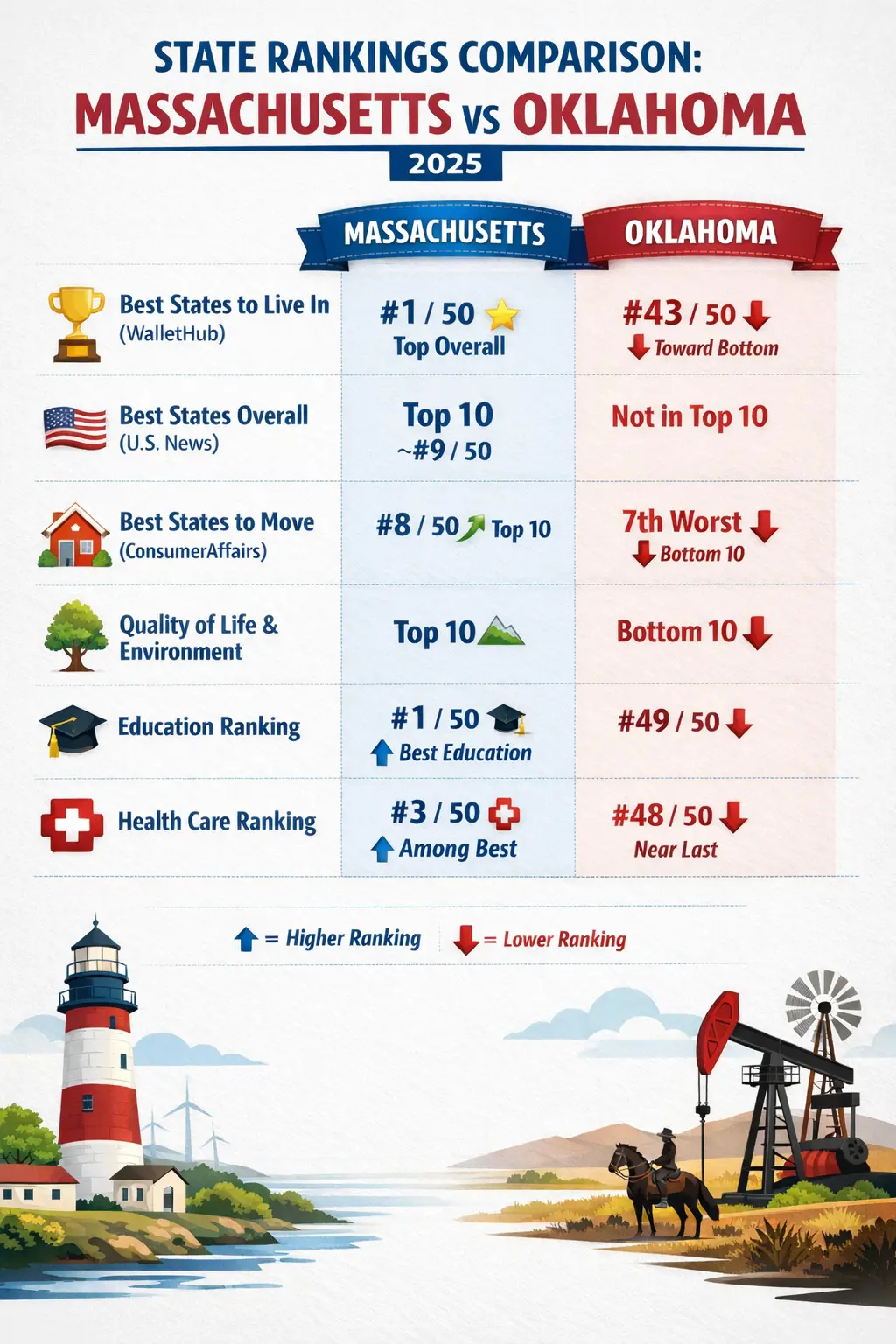 Only two states in the entire country voted unanimously for their presidential pick at the county level. It says quite a bit about the choices people are making for themselves and for the country when you look at those states and their results. The results of an entire state made up of MAGA supporters compared to a state made up of entirely of anti-MAGA supporters can easily be compared and contrasted below and the results are stunning. Oklahoma is deficient in nearly every category of life and Massachusetts is leading in nearly every category of life. MAGA should be renamed to MOAN (Make Oklahoma America Now). Discuss.